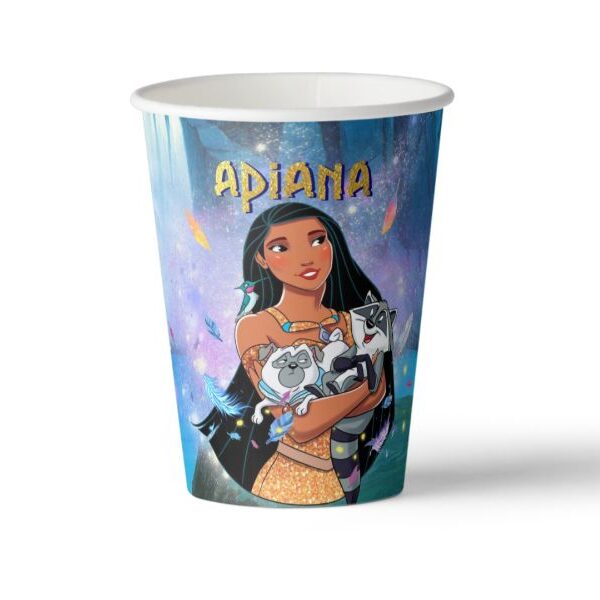 Ποτηράκια με το όνομα του παιδιού και θέμα Ποκαχόντας, για να κεράσετε τους καλεσμένους σας στο τραπέζι του πάρτυ!