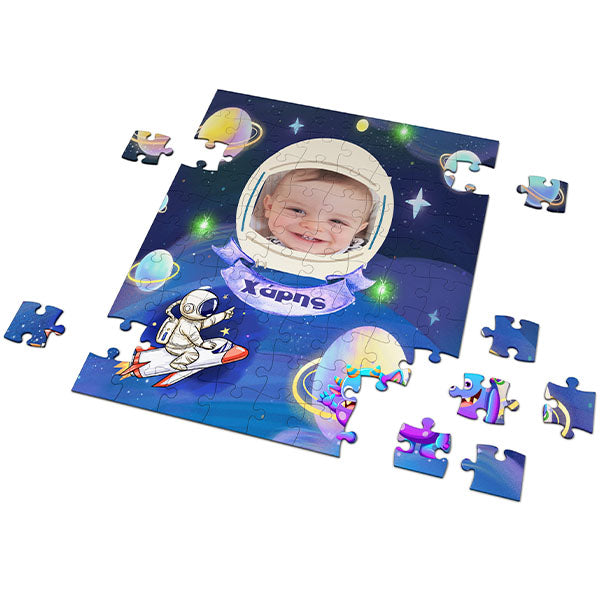 Προσωποποημένο παζλ με θέμα Διάστημα και τη φωτογραφία του παιδιού. Ένα πρωτότυπο δώρο για να χαρίσετε στους λάτρεις του διαστήματος ή στους καλεσμένους της εκδήλωσης!