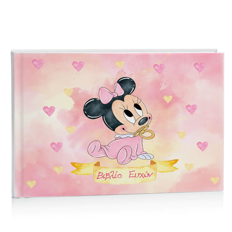 Εντυπωσιακό, χειροποίητο Βιβλίο Ευχών με θέμα το Baby Minnie για τη Βάπτιση του μωρού σας! Κρατήστε για πάντα τις ευχές των καλεσμένων σας σε ένα όμορφο και ιδιαίτερο ευχολόγιο.
