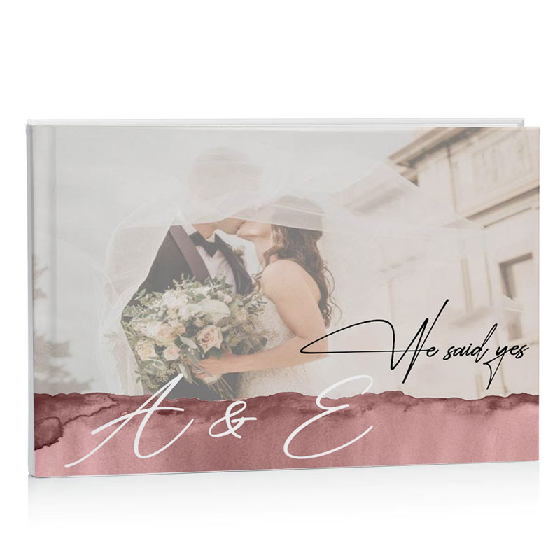 Βιβλίο Ευχών για την ημέρα του γάμου, με εκτυπωμένη τη φωτογραφία και τα αρχικά των νεόνυμφων. Κρατήστε για πάντα τις ευχές των καλεσμένων σας σε ένα όμορφο ευχολόγιο.