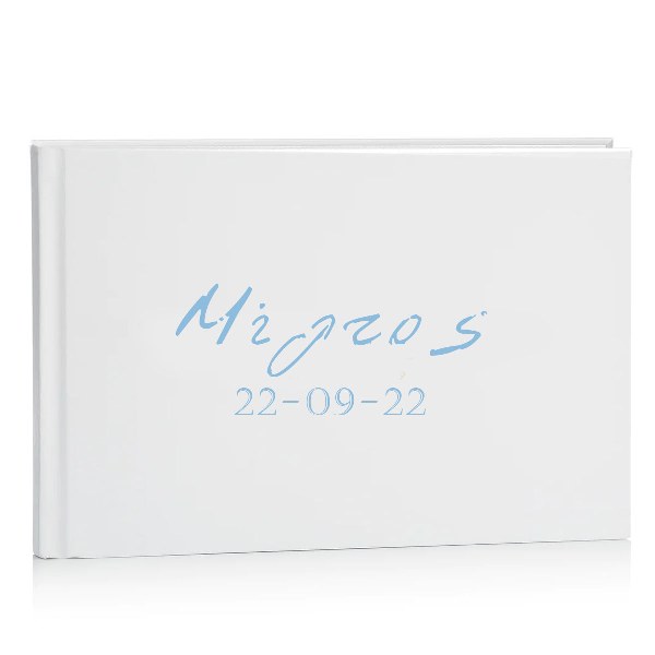 Ευχολόγιο σε λευκό χρώμα με τυπωμένο το όνομα του νεοφώτιστου παιδιού και την ημερομηνία της βάπτισης, για να κρατήσετε για πάντα τις ευχές των καλεσμένων! Ταιριάζει με όποιο θέμα κι αν επιλέξετε στη βάπτιση του μωρού σας!