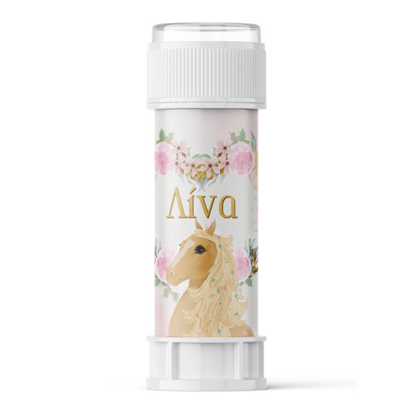 Προσωποποιημένες σαπουνόφουσκες με χάρτινο περιτύλιγμα και θέμα Άλογο, για να χαρίσετε ως αναμνηστικό δωράκι στους μικρούς καλεσμένους του πάρτι.