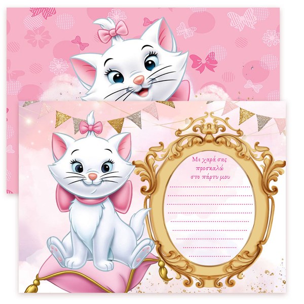 Προσκλήσεις για το πάρτυ γενεθλίων με θέμα τη γατούλα Marie από την ταινία της Disney Αριστόγατες!