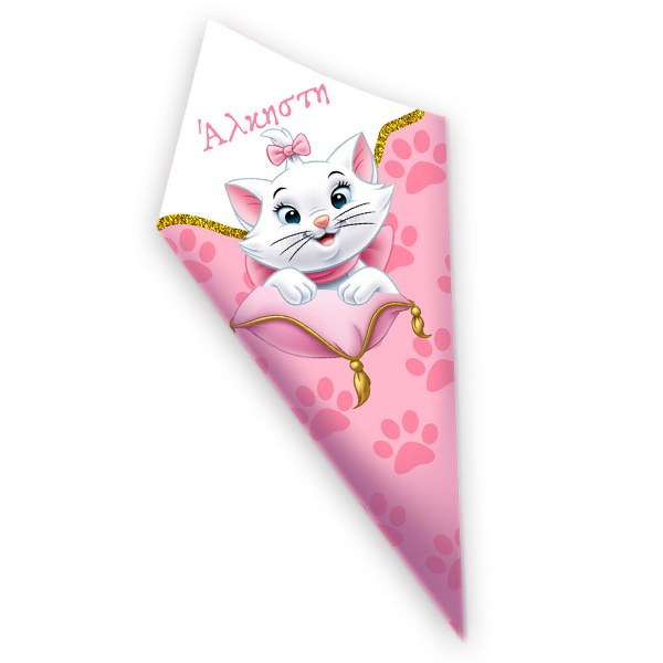 Στολίστε το candy bar ή το τραπέζι, με προσωποποιημένα χωνάκια ζαχαρωτών με θέμα τη γατούλα Marie από τις Αριστόγατες Disney, για να κεραστούν οι καλεσμένοι σας!