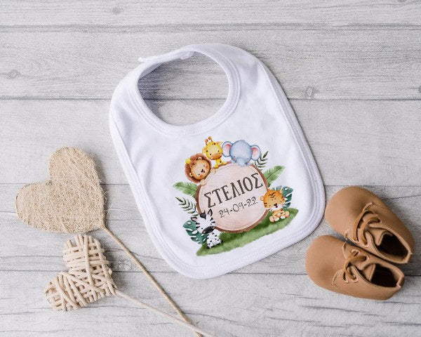 Προσωποποιημένη σαλιάρα με θέμα Σαφάρι για να φορά το μωράκι σας!
