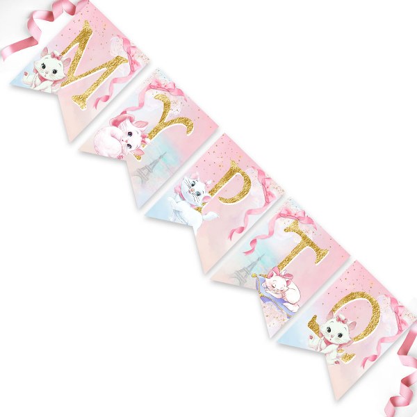 Διακοσμητικά σημαιάκια με θέμα Αριστόγατες και το όνομα του παιδιού για να στολίσετε μοναδικά το candy bar ή τον μπουφέ της βάπτισης!