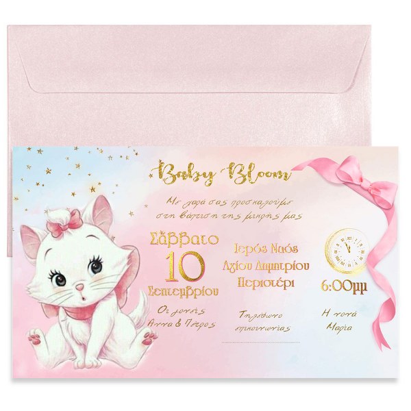 Προσκαλέστε τα αγαπημένα σας άτομα στη βάπτιση του μωρού σας με προσκλητήριο με θέμα τη γατούλα Marie από τις Αριστόγατες!