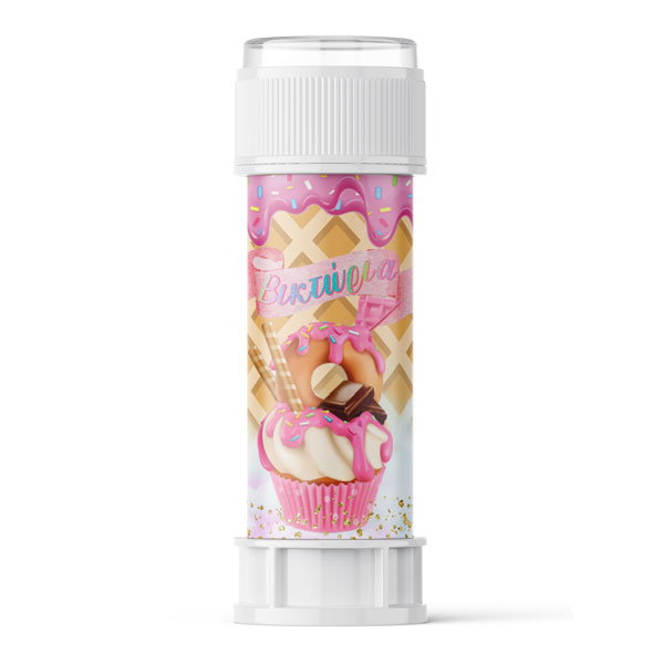 Προσωποποιημένες σαπουνόφουσκες με χάρτινο περιτύλιγμα και θέμα Ζαχαρωτά, για να χαρίσετε ως αναμνηστικό δωράκι στους μικρούς καλεσμένους του πάρτι.