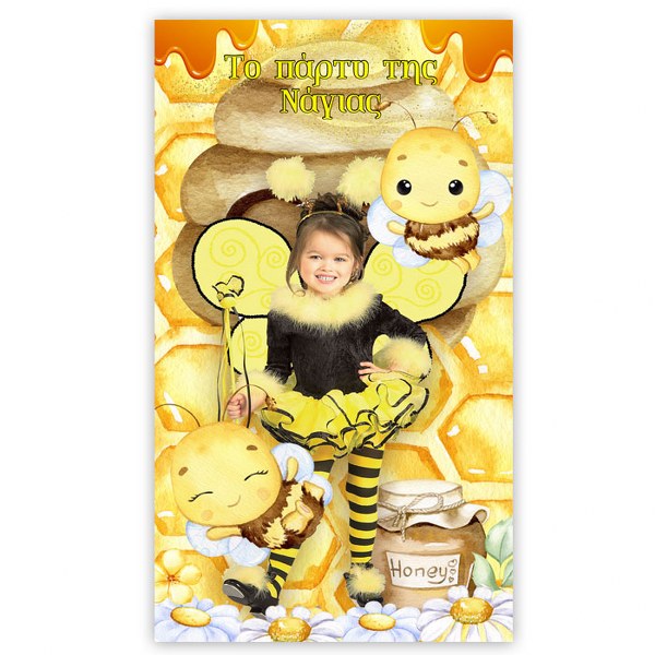 Μεγάλη διακοσμητική αφίσα με θέμα Μελισσούλα και εκτυπωμένη τη φωτογραφία του παιδιού σας, για να υποδεχθείτε τους καλεσμένους σας στο πάρτυ γενεθλίων!