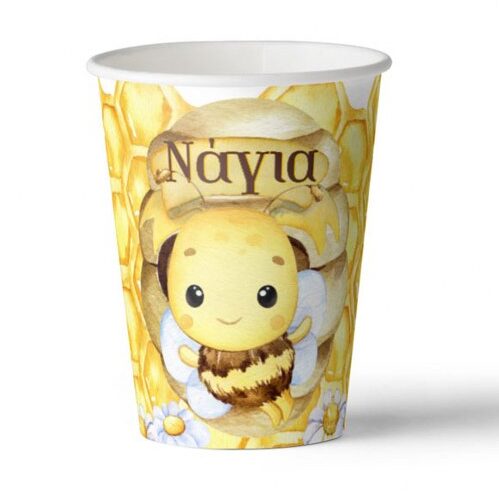 Ποτηράκια με το όνομα του παιδιού και θέμα Μελισσούλα, για να κεράσετε τους καλεσμένους σας στο τραπέζι του πάρτυ!