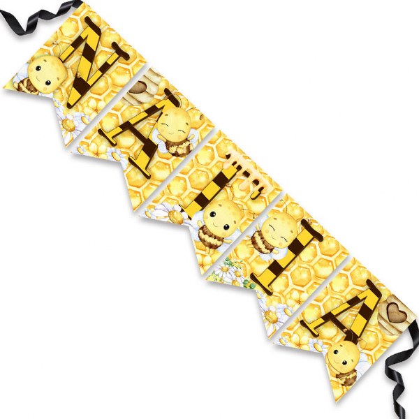 Διακοσμητικά σημαιάκια με θέμα Μελισσούλα και το όνομα του παιδιού για να στολίσετε μοναδικά τον μπουφέ του πάρτι!