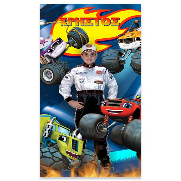 Μεγάλη διακοσμητική αφίσα με θέμα Blaze και εκτυπωμένη τη φωτογραφία του παιδιού σας, για να υποδεχθείτε τους καλεσμένους σας στο πάρτυ γενεθλίων!