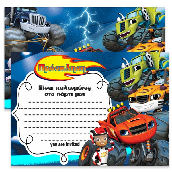 Προσκλήσεις για το πάρτυ γενεθλίων με θέμα Blaze για να μοιράσετε στους καλεσμένους σας!