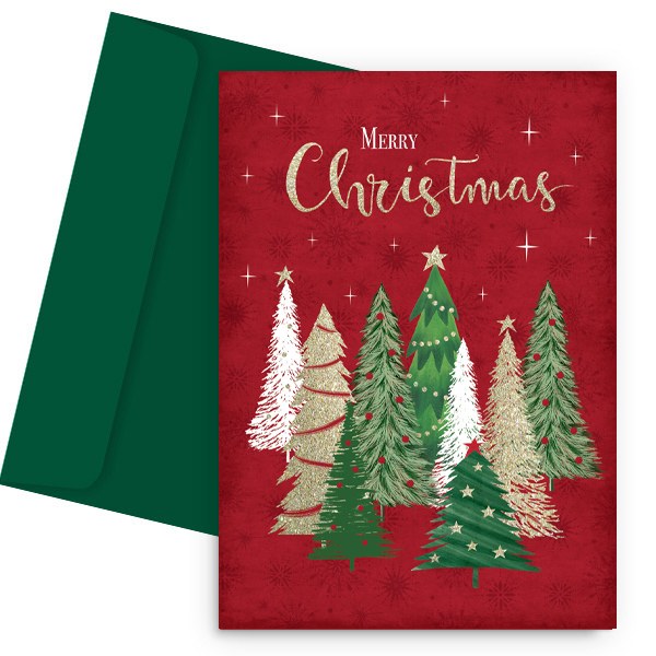 Ευχετήρια κάρτα με χριστουγεννιάτικα έλατα, για να ευχηθείτε στα αγαπημένα σας άτομα!