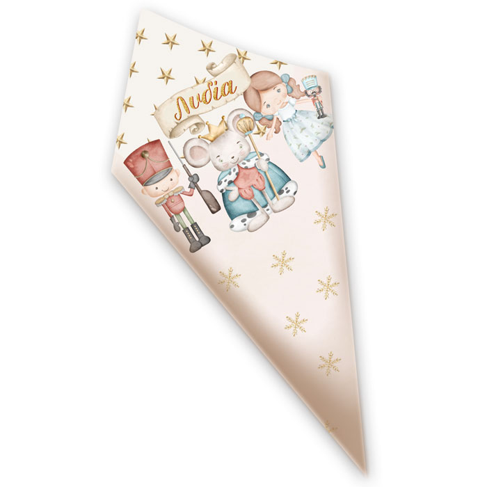 Στολίστε το candy bar του πάρτυ ή το τραπέζι της βάπτισης, με χωνάκια ζαχαρωτών Καρυοθραύστη με το όνομα του παιδιού τυπωμένο επάνω, για να κεράσετε τους καλεσμένους σας!