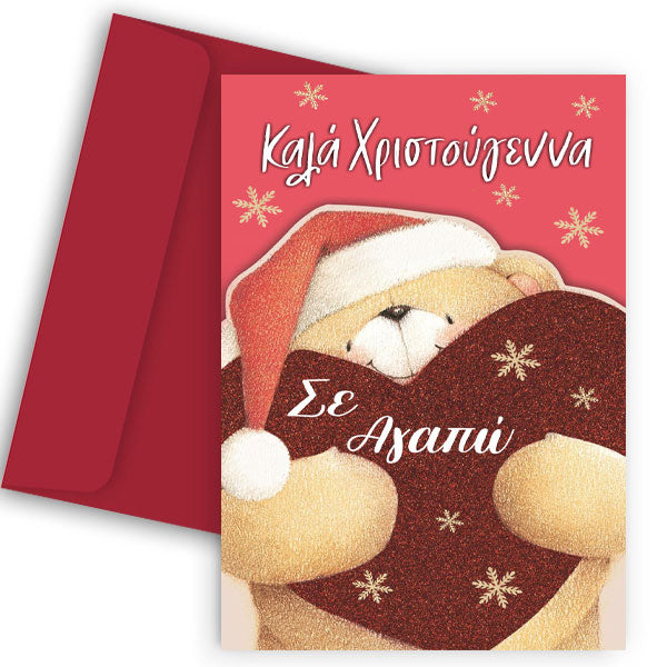 Ευχετήρια κάρτα Αρκουδάκι της Αγάπης, για να ευχηθείς στο αγαπημένο σου άτομο για τα Χριστούγεννα!