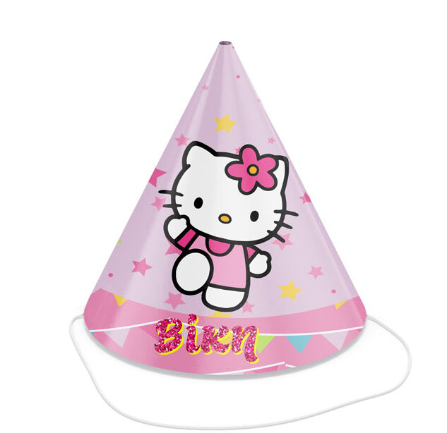 Μοιράστε στους καλεσμένους του πάρτυ σας, καπελάκια με θέμα την Hello Kitty και τυπωμένο το όνομα της επιλογής σας επάνω και βάλτε τους όλους σε γιορτινή διάθεση!