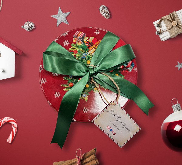 - Περιλαμβάνει: Χριστουγεννιάτικο τσίγκινο κουτί για μπισκότα (διάμετρος: 15 cm) και 10 στολίδια σε σχήμα μπισκότου