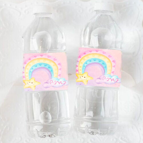 Οι μικροί καλεσμένοι δεν γίνεται να έχουν ένα κοινό μπουκάλι νερού! Μεταμορφώστε τα με τις προσωποποιημένες ετικέτες στο θέμα Ουράνιο Τόξο, που μπορούν να αναγράφουν το όνομα του παιδιού του.
