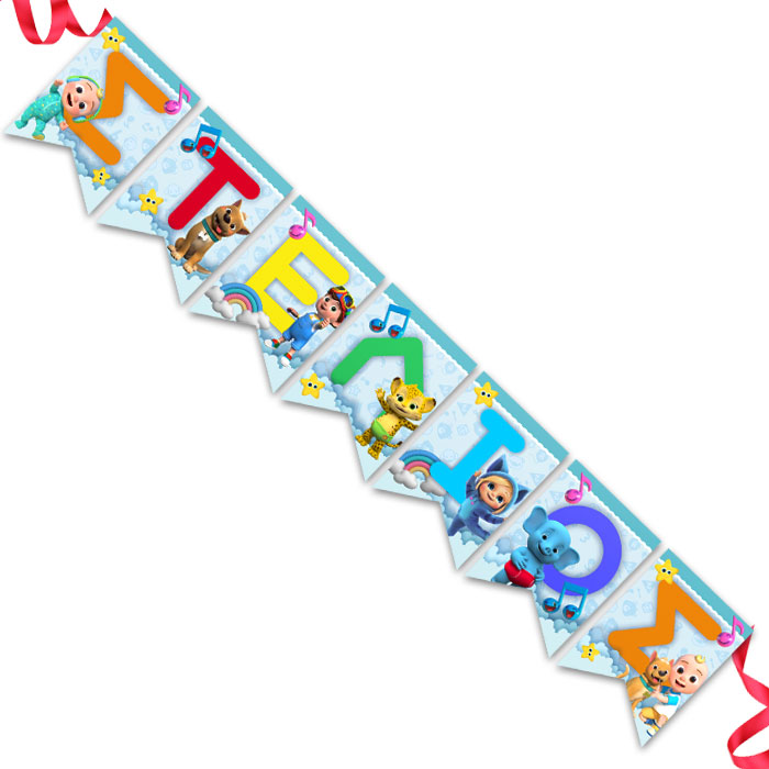 Σημαιάκια με το όνομα του παιδιού και θέμα Cocomelon!