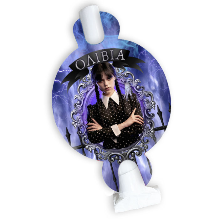 Προσωποποιημένα Blowouts με θέμα την Wednesday Addams για να μοιράσετε στους καλεσμένους του πάρτυ και να τους βάλετε σε dark διάθεση!
