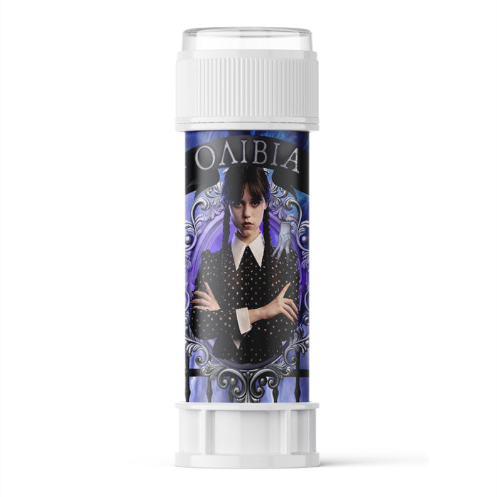 Προσωποποιημένες σαπουνόφουσκες Wednesday Addams με χάρτινο περιτύλιγμα , για να χαρίσετε ως δώρο στους πιο κακούς καλεσμένους του πάρτυ σας!