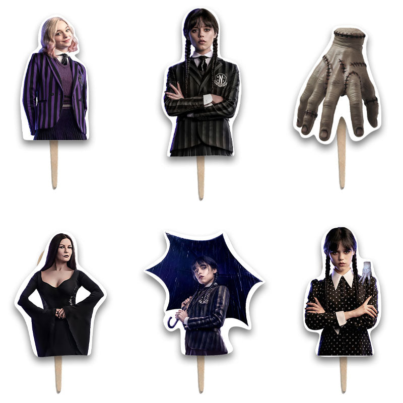 Topper-Οδοντογλυφίδες για να στολίσετε τα φαγητά και τα γλυκά του πάρτι, με θέμα την αγαπημένη κακιά της Nevermore, την Wednesday Addams!