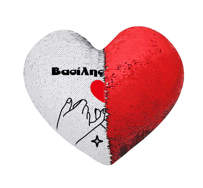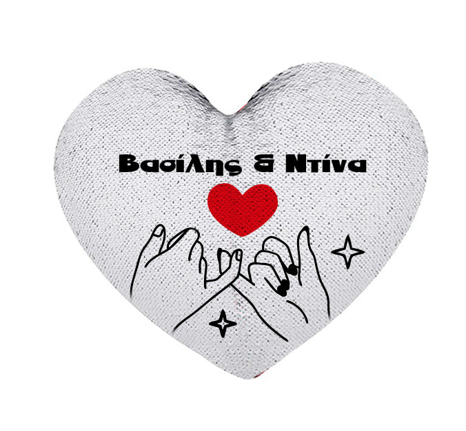 Μαξιλάρι "Take my Hand" με τα ονόματά σας σε σχήμα καρδιάς με πούλιες διπλής όψης, για να χαρίσεις στο άλλο σου μισό και να δείξεις την αγάπη σου!