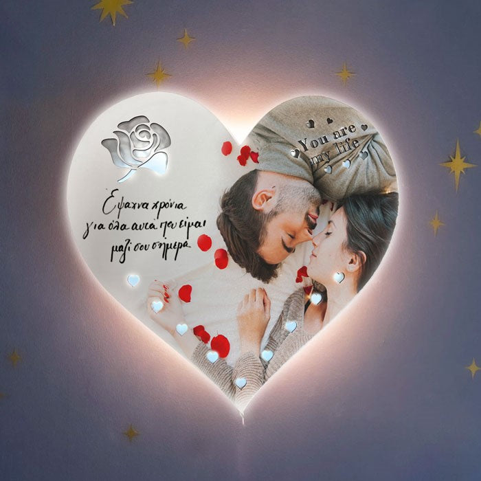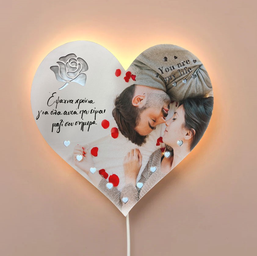 Εντυπωσιακό ξύλινο φωτιστικό αγάπης σε σχήμα καρδιάς με την αφιέρωση και τη φωτογραφία σας! Ένα μοναδικό δώρο για να χαρίσεις στο αγαπημένο σου πρόσωπο, που θα διακοσμεί το δωμάτιο και θα σε θυμίζει!