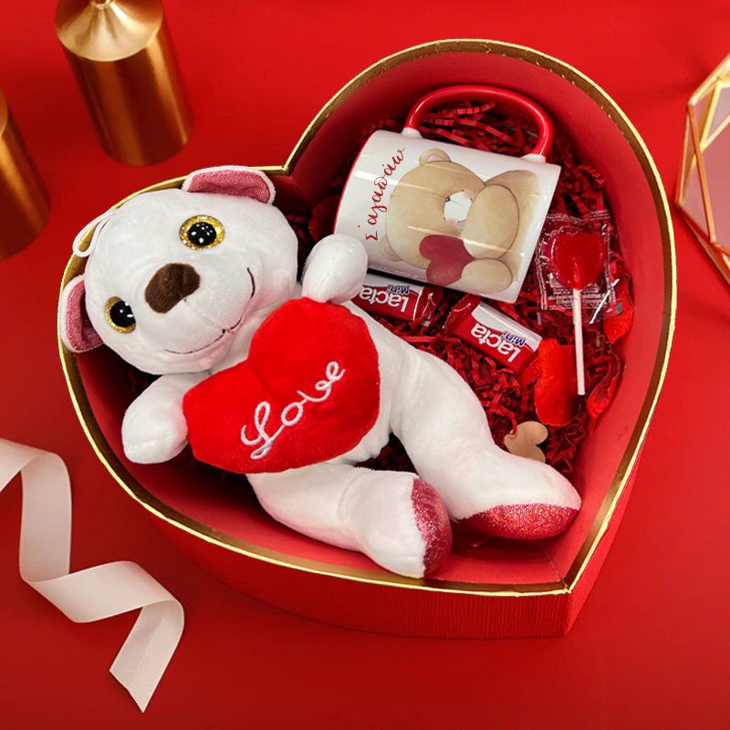 Κουτί δώρου με κούπα και μαλακό λούτρινο αρκουδάκι! Ένα μοναδικό δώρο για να χαρίσετε στο άλλο σας μισό!Το κουτί περιλαμβάνει: