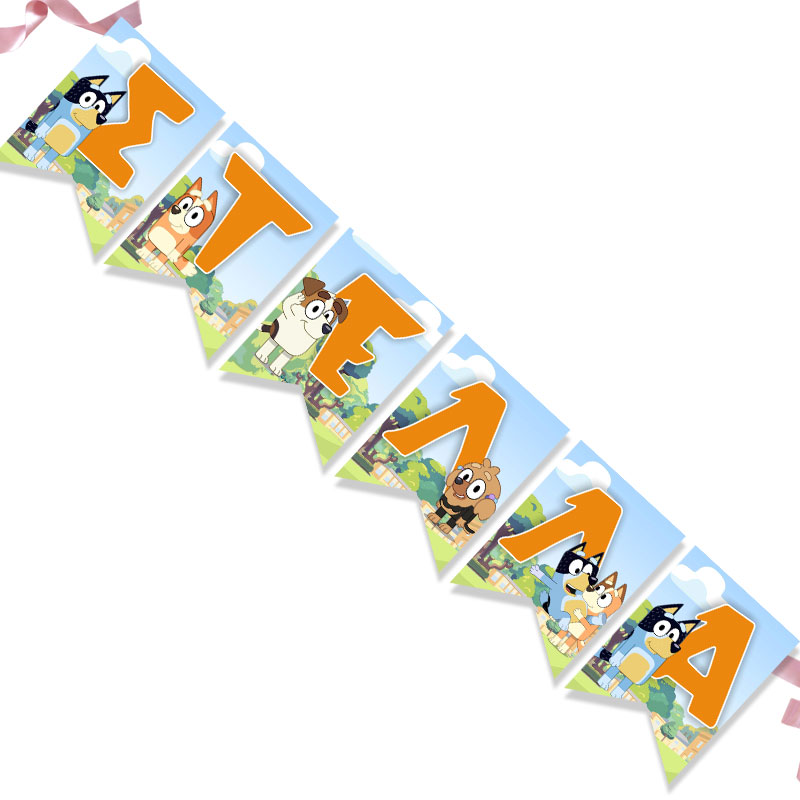 Σημαιάκια με το όνομα του παιδιού και θέμα την Bluey!