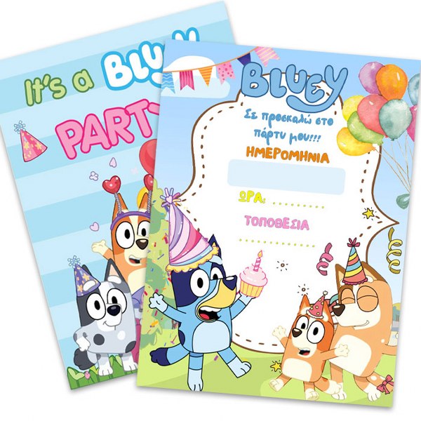 Προσκλήσεις για το πάρτυ γενεθλίων με θέμα την παιχνιδιάρα και εφευρετική Bluey!