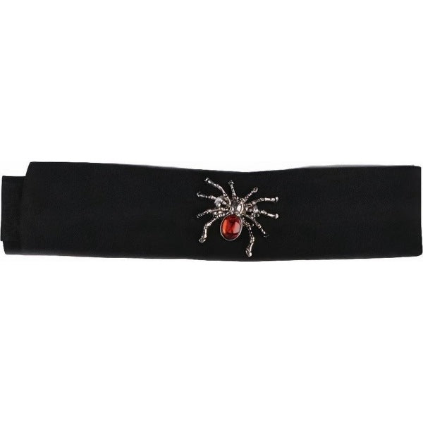 • Μαύρο τσόκερ από βελούδινο ύφασμα με μεταλλική διακοσμητική αράχνη με κόκκινη πέτρα