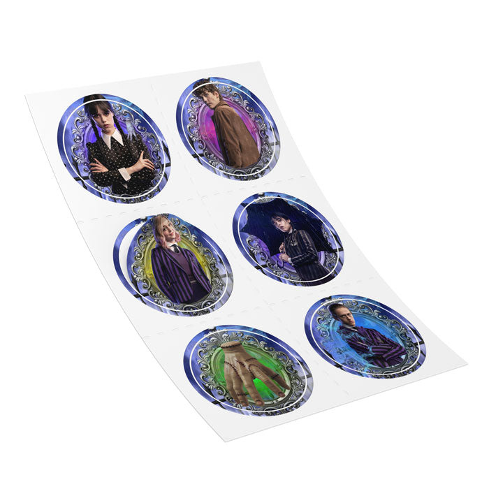 Στρογγυλά αυτοκόλλητα με θέμα την Wednesday Addams, για να διακοσμήσετε τα αγαπημένα σας αντικείμενα με αυτά!