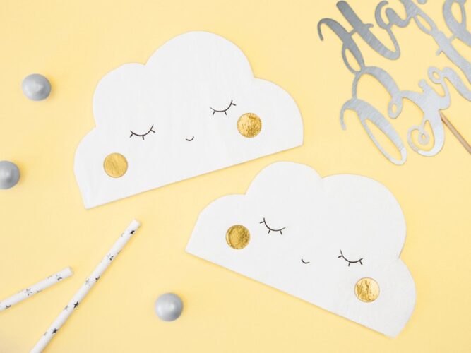 Σχηματικές χαρτοπετσέτες με γλυκό Συννεφάκι και χρυσές ανάγλυφες λεπτομέρειες για να διακοσμήσετε το μπουφέ του πάρτυ, της βάπτισης ή του Baby Shower!