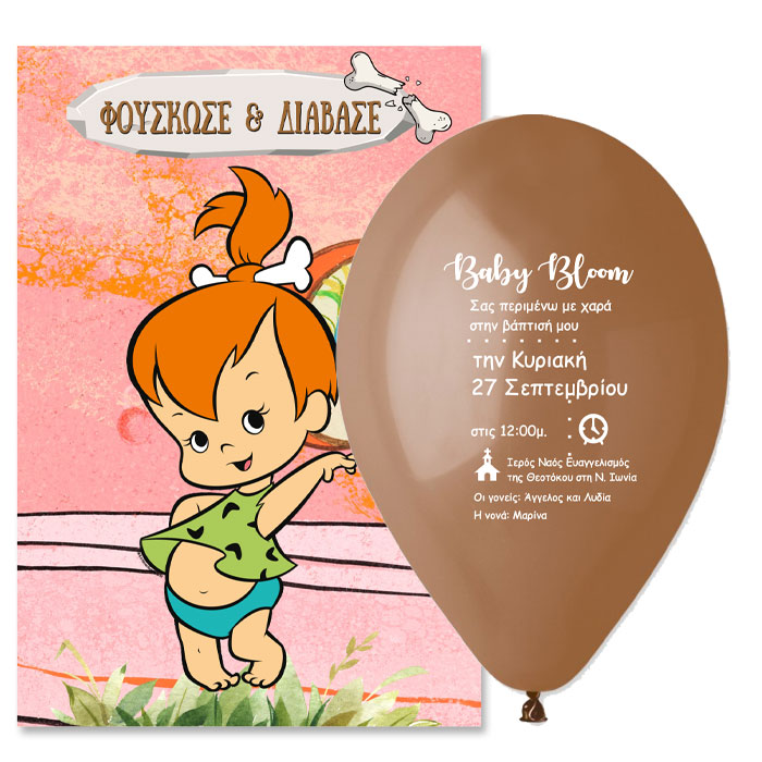 Πρωτότυπο προσκλητήριο βάπτισης σε τυπωμένο μπαλόνι με θέμα την χαριτωμένη Σταλίτσα. Οι καλεσμένοι θα πρέπει να φουσκώσουν το τυπωμένο μπαλόνι για να μάθουν τις λεπτομέρειες της βάπτισης!