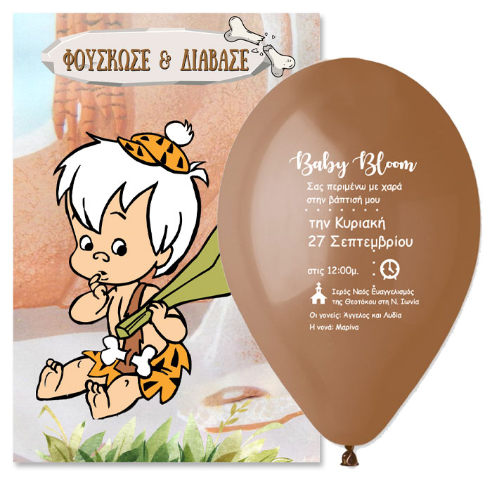 Πρωτότυπο προσκλητήριο βάπτισης σε τυπωμένο μπαλόνι με θέμα τον χαριτωμένο Μπαμ Μπαμ. Οι καλεσμένοι θα πρέπει να φουσκώσουν το τυπωμένο μπαλόνι για να μάθουν τις λεπτομέρειες της βάπτισης!