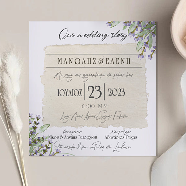 Προσκλητήριο γάμου με θέμα την λεβάντα, για να καλέσεις τους αγαπημένους σου φίλους στον γάμο σου και να τους εκπλήξεις ευχάριστα!
