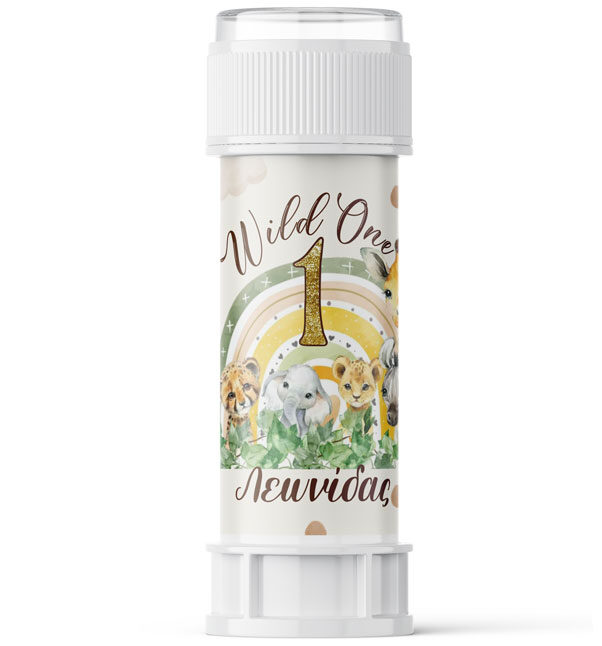 Προσωποποιημένες σαπουνόφουσκες με θέμα Wild One! Με χάρτινο περιτύλιγμα και το όνομα της επιλογής σου τυπωμένο επάνω για να χαρίσεις ως δωράκι στoυς μικρούς καλεσμένους του πάρτυ.