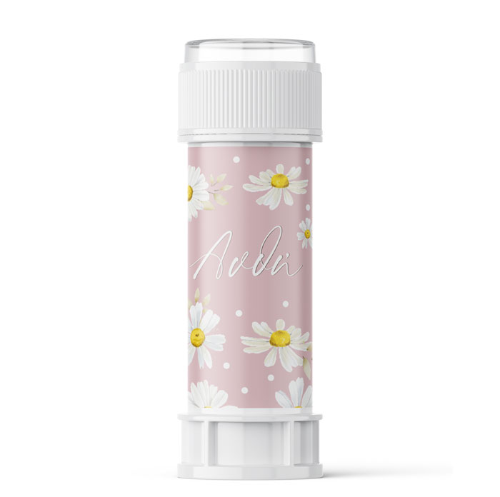 Προσωποποιημένες σαπουνόφουσκες με χάρτινο περιτύλιγμα και θέμα Μαργαρίτα, για να χαρίσετε ως δωράκι στους μικρούς καλεσμένους.