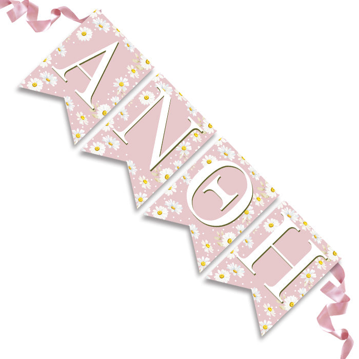 Διακοσμητικά σημαιάκια με το όνομα του παιδιού και θέμα Μαργαρίτα!