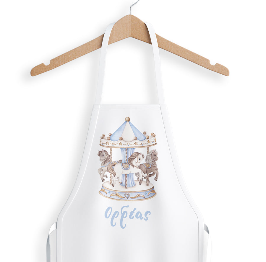 Προσωποποιημένη ποδιά με θέμα αλογάκια καρουζέλ για να την φορά ο νονός ή η νονά του μωρού σας στη βάπτιση του!