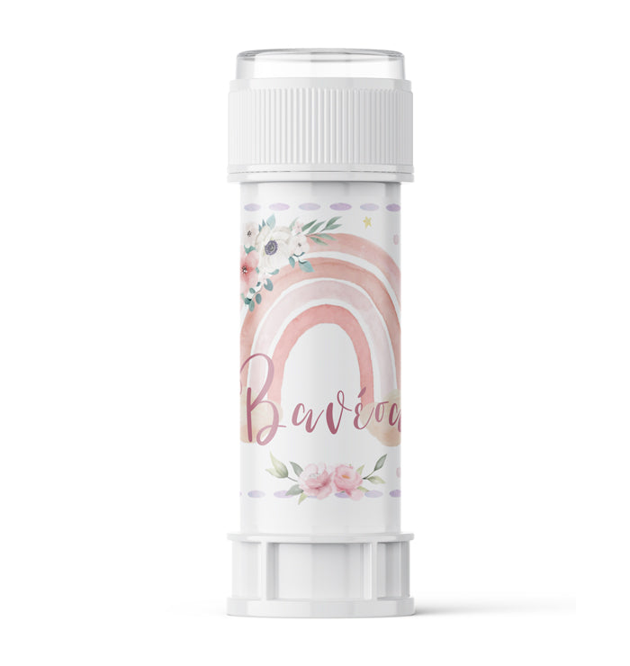 Προσωποποιημένες σαπουνόφουσκες με χάρτινο περιτύλιγμα και θέμα Ουράνιο Τόξο κορίτσι, για να χαρίσετε ως δωράκι στους μικρούς καλεσμένους.
