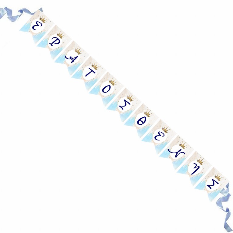 Διακοσμητικά σημαιάκια με το όνομα του παιδιού και θέμα Κορώνα αγόρι!