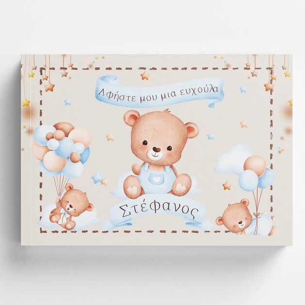 Εντυπωσιακό, χειροποίητο Βιβλίο Ευχών με θέμα Αρκουδάκι, για τη Βάπτιση του μωρού σας! Κρατήστε για πάντα τις ευχές των καλεσμένων σας σε ένα όμορφο ευχολόγιο.