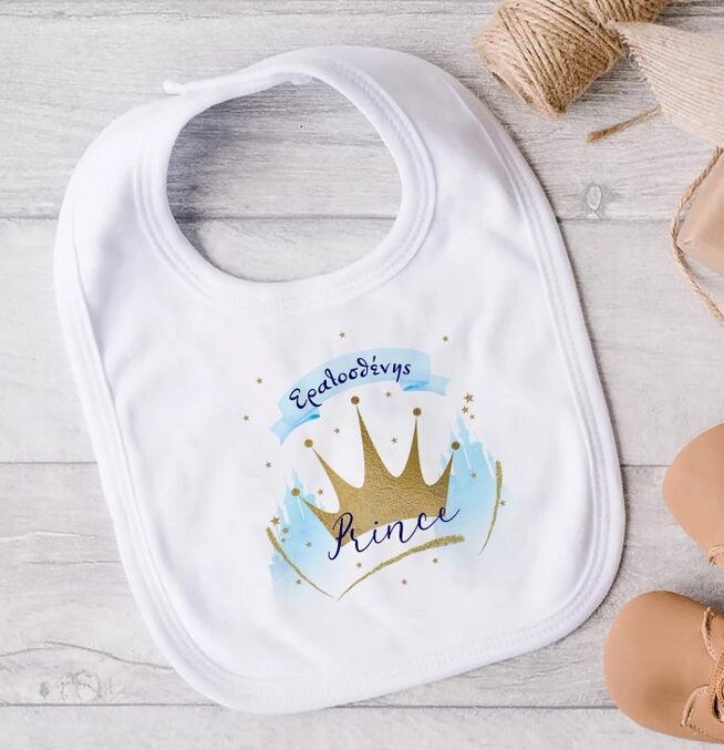 Προσωποποιημένη σαλιάρα με θέμα Κορώνα για αγόρι για να φορά το μωράκι σας!