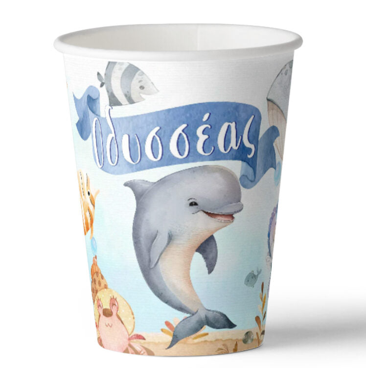 Ποτηράκια με το όνομα του μικρού σας και θέμα την Θάλασσα, για να κεράσετε τους καλεσμένους σας στο τραπέζι του πάρτυ ή της βάπτισης!