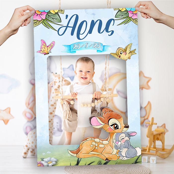 Προσωποποιημένο κάδρο Photobooth με θέμα το γλυκό Ελαφάκι Bambi, για να φωτογραφιστείτε μαζί με τους καλεσμένους σας στη βάπτιση του μικρού σας!