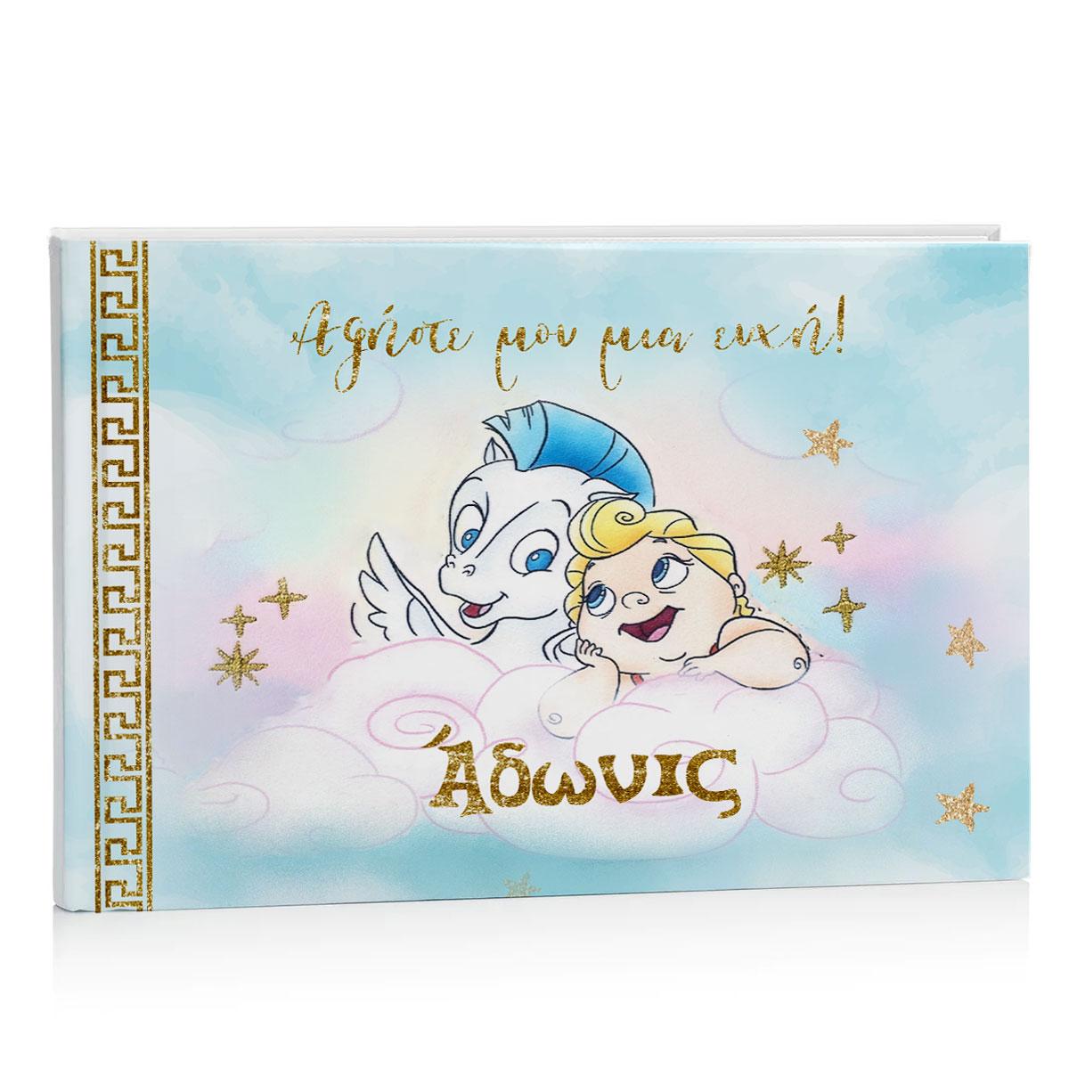 Εντυπωσιακό, χειροποίητο Βιβλίο Ευχών με θέμα τον baby Ηρακλή και τον αγαπημένο του Πήγασο! Κρατήστε για πάντα τις ευχές των καλεσμένων σας σε ένα όμορφο ευχολόγιο.