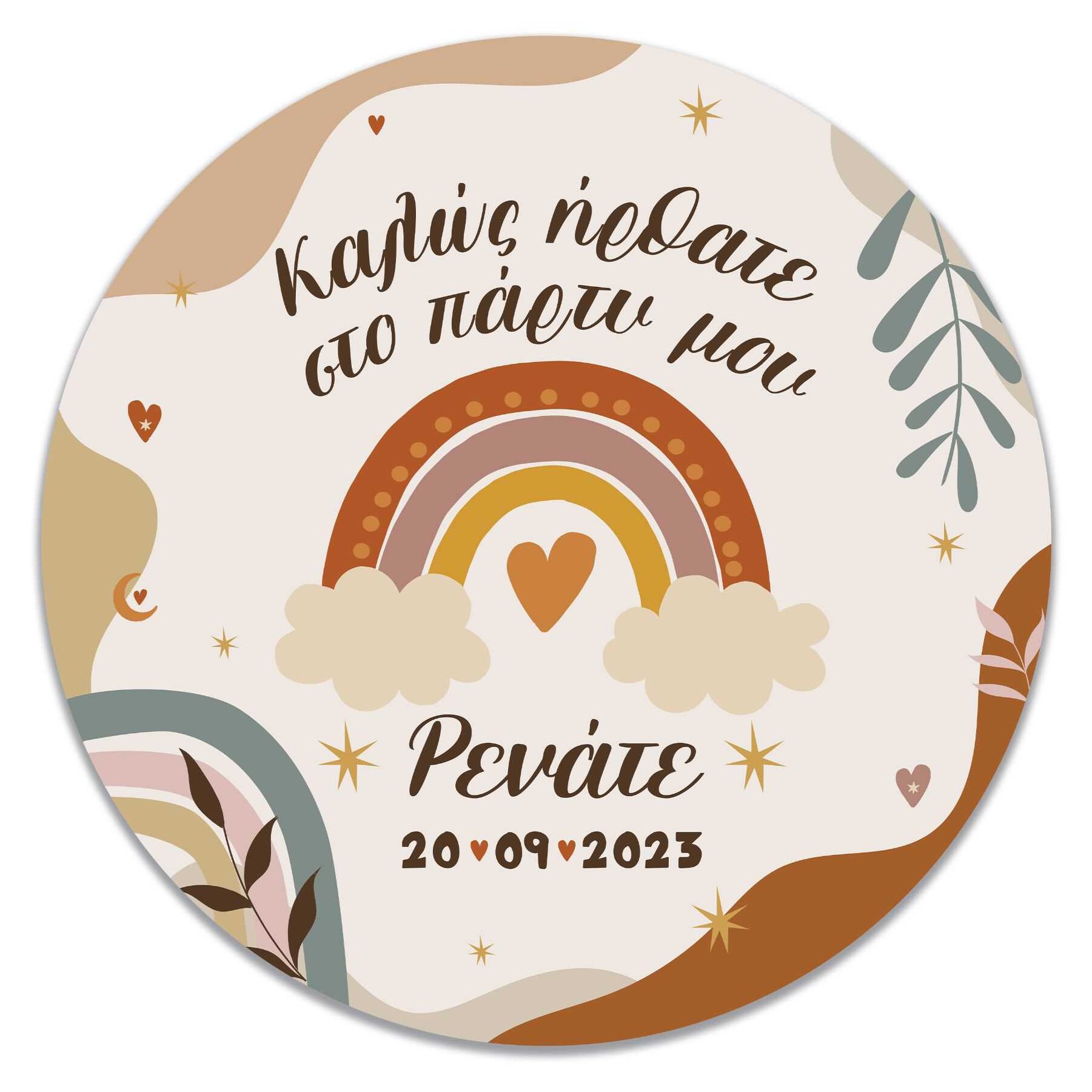Στρογγυλή Αφίσα με θέμα Ουράνιο Τόξο Boho. Εκτυπώστε το μήνυμα που θέλετε και διακοσμήστε μοναδικά το χώρο της βάπτισης ή του πάρτυ!